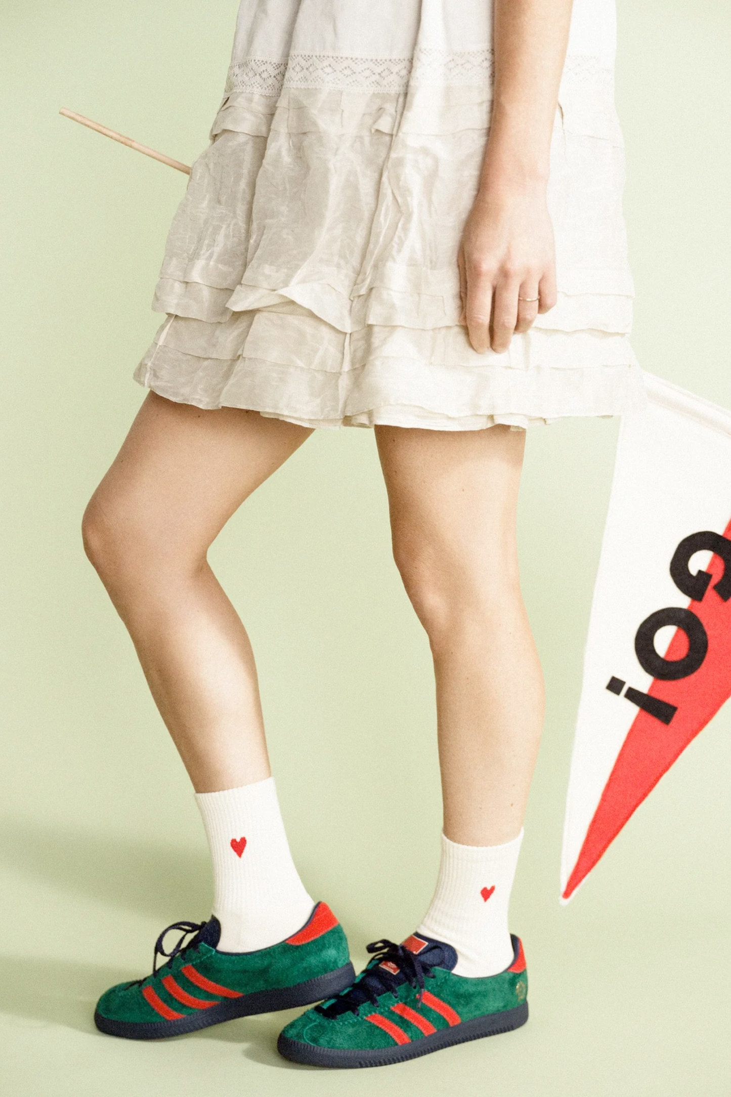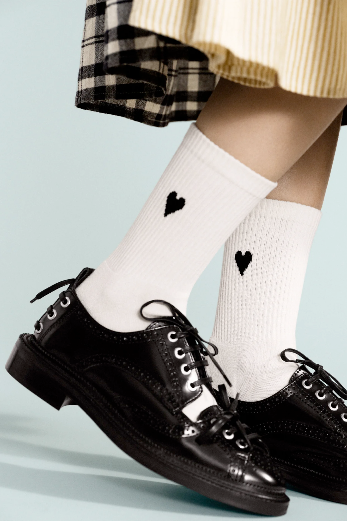 Wear your heart on your…socks. This supersoft pair with a sweet little heart just as easily complements non-sporty looks so you can wear these crews for working out and going out.