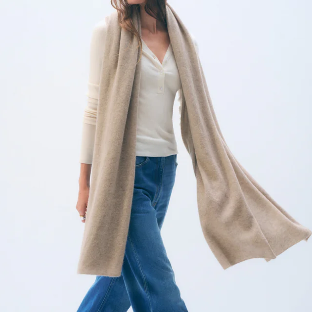 A best seller since its debut. This cloud-soft, generously sized wrap boasts endless styling power. Featuring nearly seven feet of pure cashmere, it's offered in a wide range of classic and limited-edition colors. Wear as an evening wrap, scarf, or blanket while traveling.