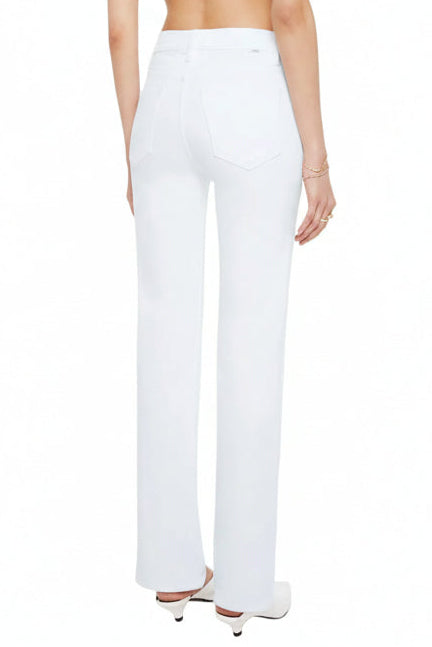 A high-rise straight leg jean with a zip fly, 32-inch inseam and a clean hem. Cut from semi-rigid SUPERIOR denim, Totally Innocent is a classic white with tonal hardware.