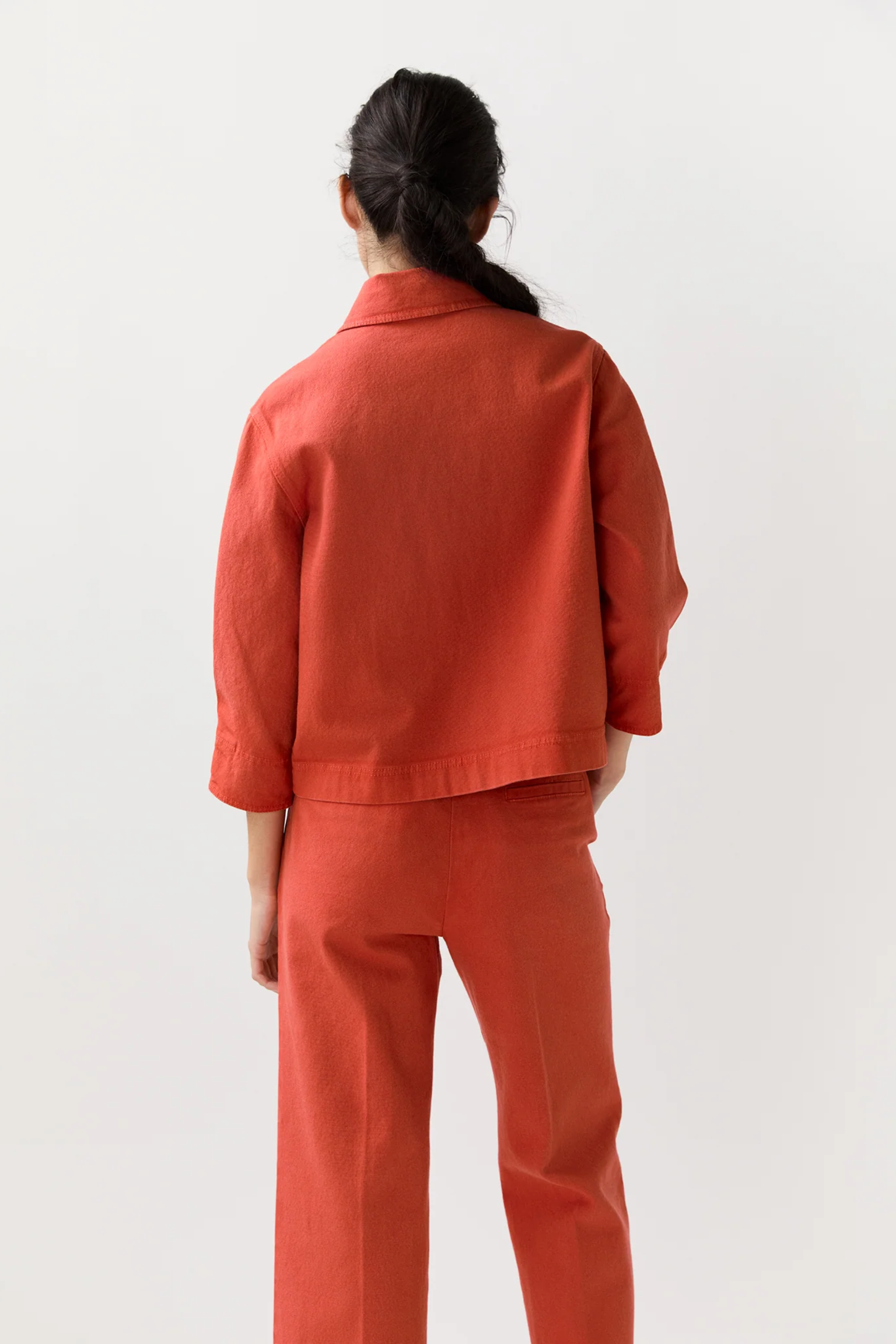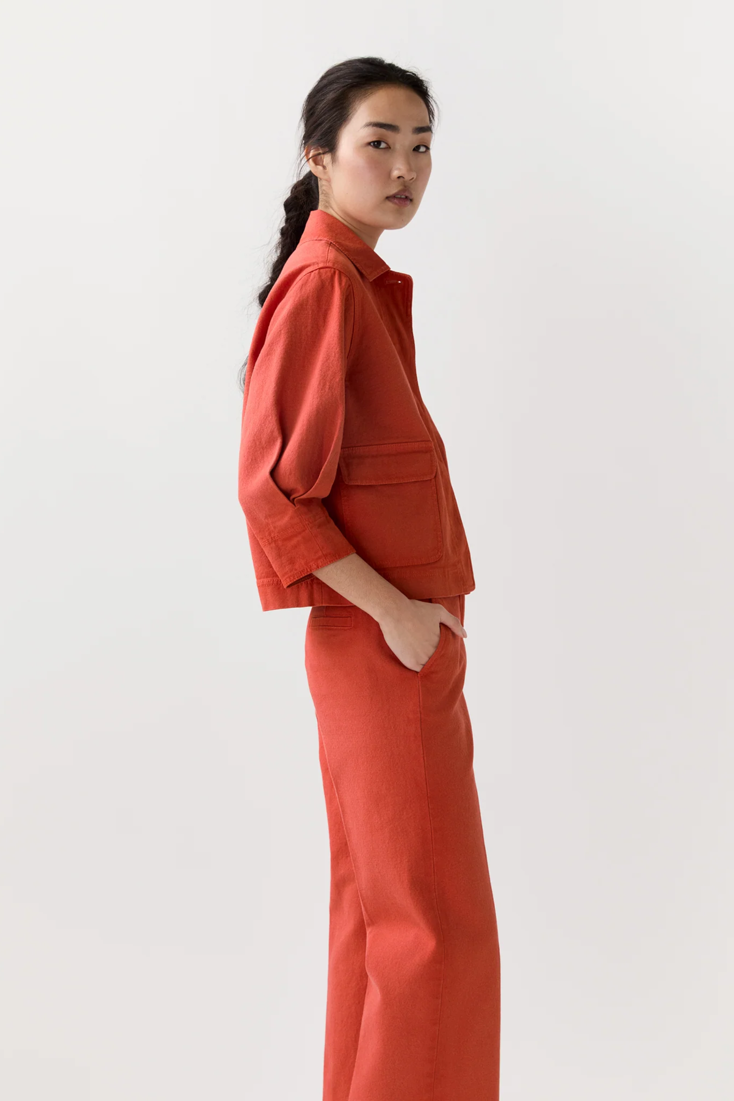 Romantic might not be the first word that comes to mind when you think workwear jacket, but this one fits the bill, with pleated blouson sleeves and a swingy, slightly cropped hem. The stretch canvas makes it easy. Toss it on over jeans and tee or go head-to-toe with the matching trousers.