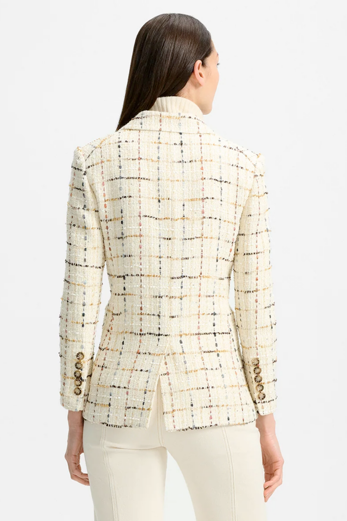 A chic classic. Expertly tailored from an Italian wool blend, the Healy is a relaxed, single-breasted blazer featuring an ecru windowpane tweed, woven with contrasting pastels for added dimension. Flap pockets, marbled buttons, and a notched lapel lend it a timeless appeal. Pair this tweed blazer with denim and your favorite boots for a polished look that carries you from desk to drinks.