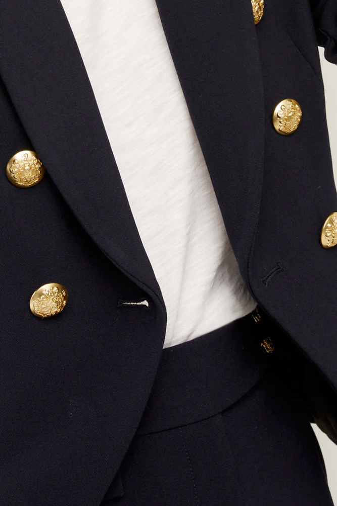 Regular price $550.00The Miller Jacket is a best-seller season after season, and this version in transitional suiting and decorative crest buttons is sure to be a timeless classic. A slight stretch allows for a comfortable and flexible fit, while the slim tailoring delivers a polished look every time. Pair with the Renzo Pant for a matching suiting look. Navy with gold buttons