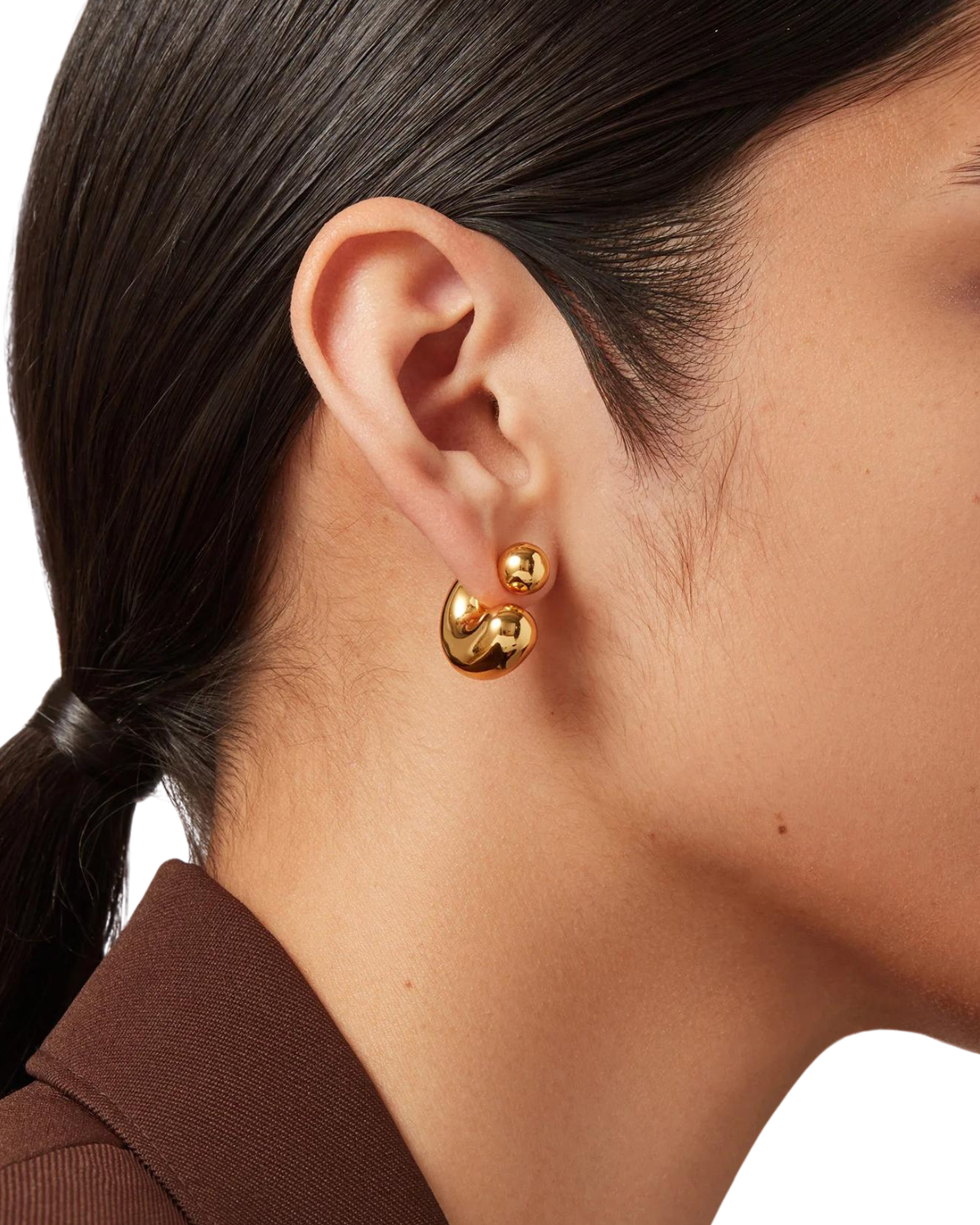A tubular, chubby hoop with rounded ends and a custom JB ball backing. Finished in high-polish gold.