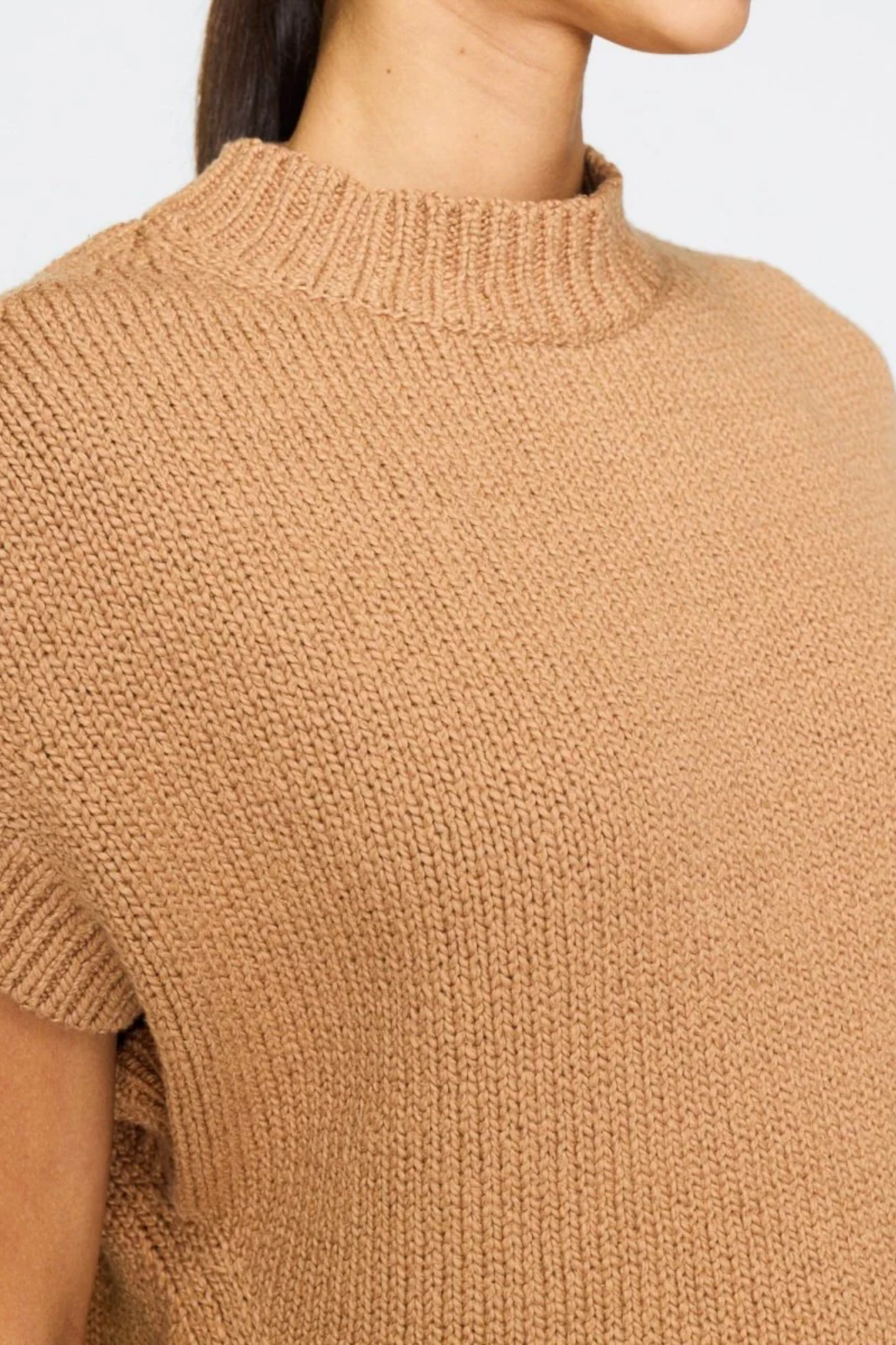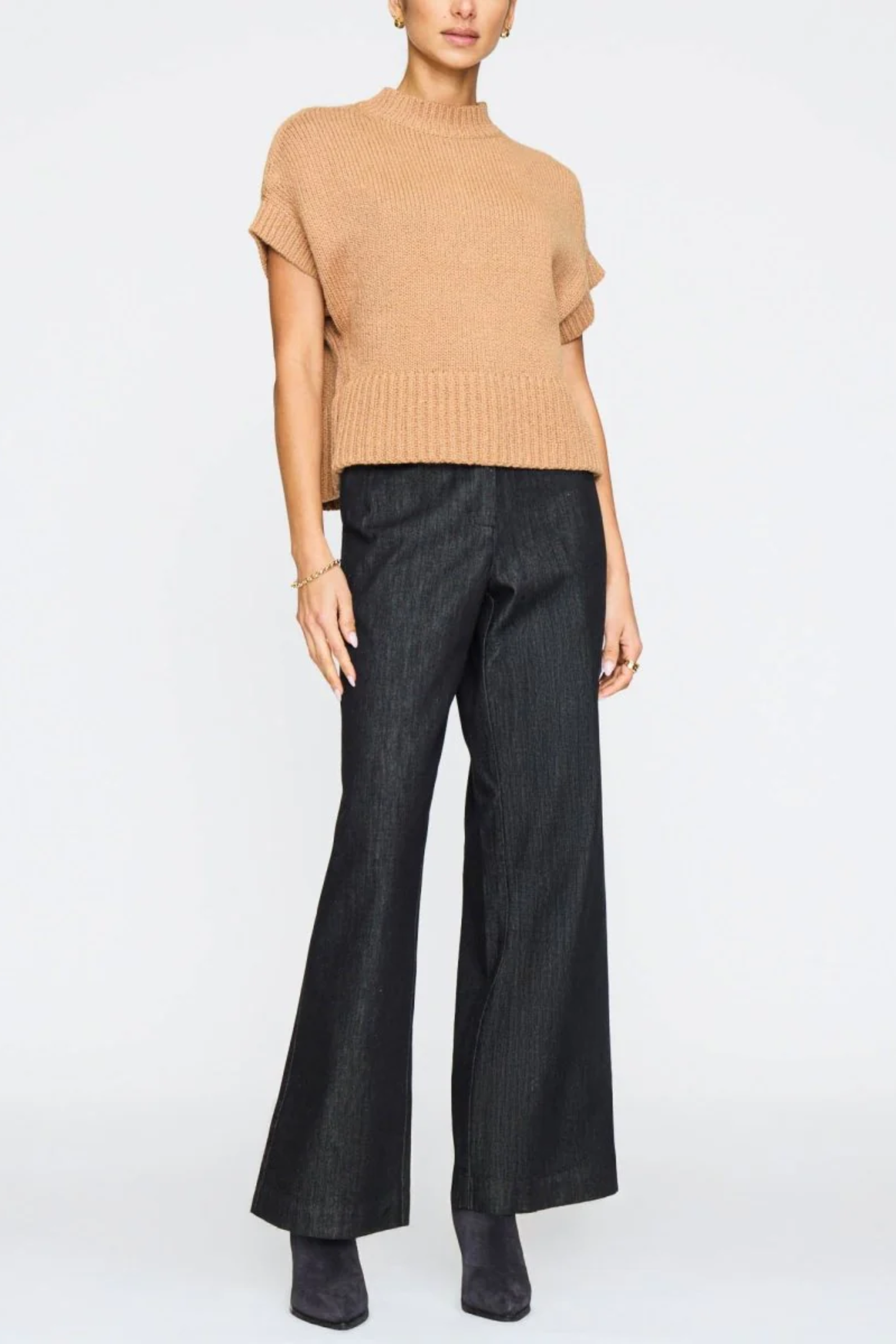 Perfectly transitional, the Adriane Sweater is a sleeveless mock neck top with a boxy silhouette. Its structured design makes it a must-have for layering into fall and beyond.