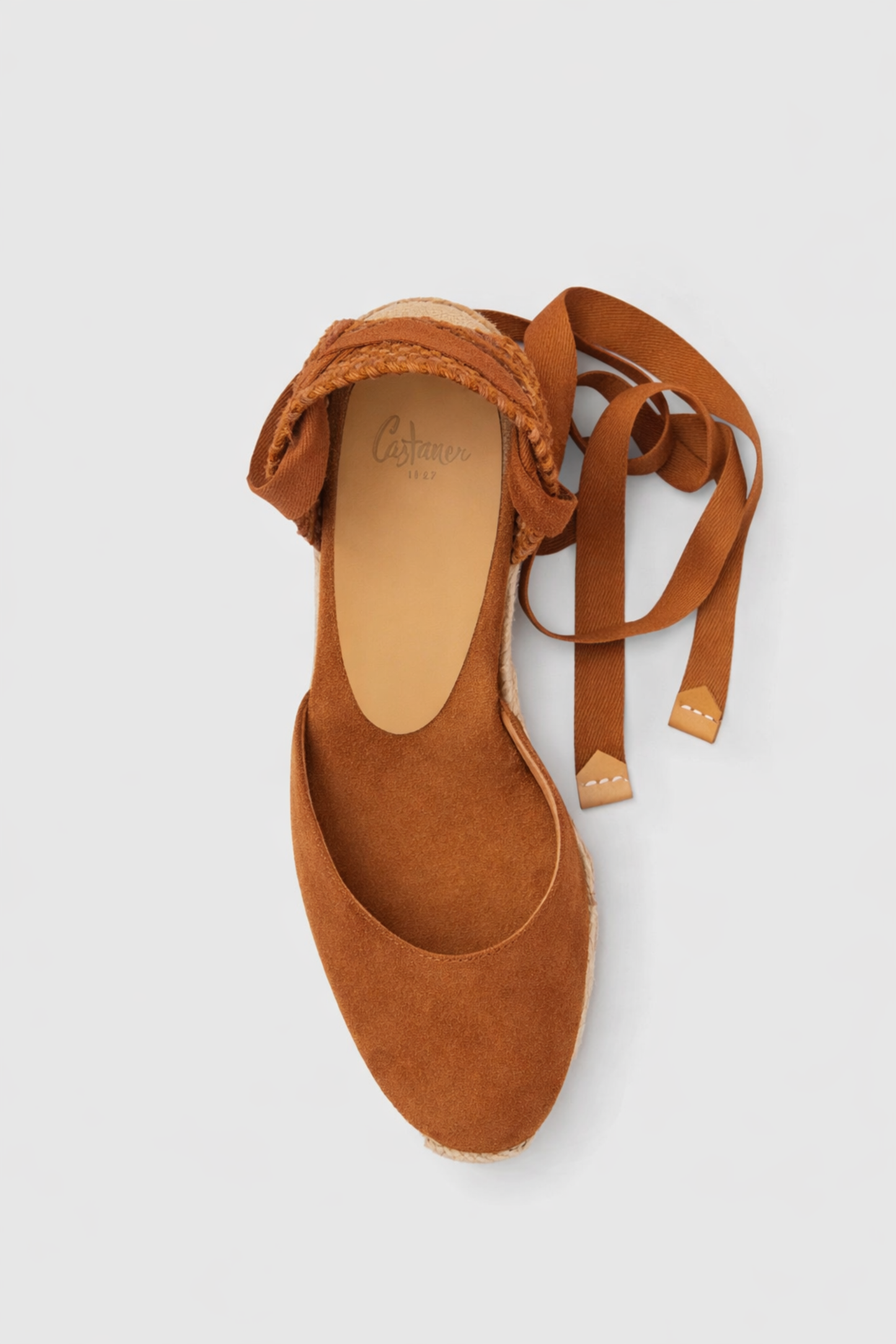 Castañer's iconic Carina espadrilles, featuring lace up ankle ties, are crafted of cotton canvas with a jute-wrapped wedge heel. Runs true to size, but if in between sizes, we recommend sizing up.