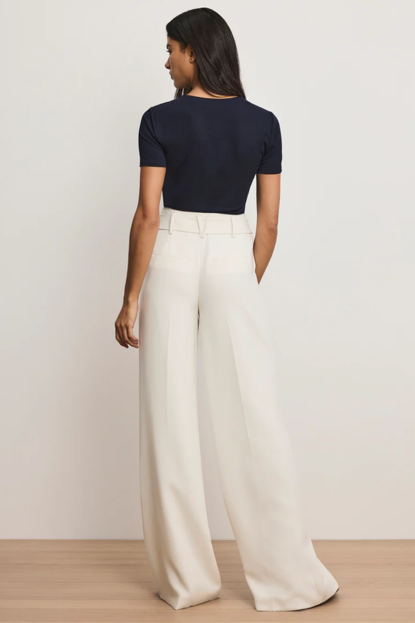 Crafted from luxe Japanese crepe, the Tai pant in off-white combines refined tailoring with fluid movement. Designed with a wide-leg silhouette and high Hollywood waistline, it features a removable tonal belt with metal grommets and a foulard scarf for styling versatility. Pair with a simple T-shirt and strappy heels to let the pants take center stage.