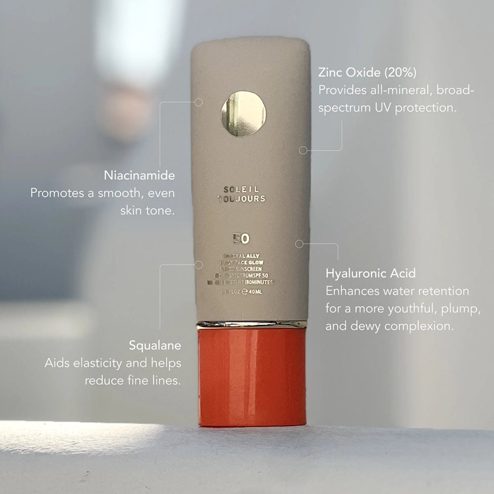 Regular price $30.00What it is: A tinted mineral sunscreen moisturizer with vitamin C, hyaluronic acid, and niacinamide plus mica for a radiant finish on all skin tones.