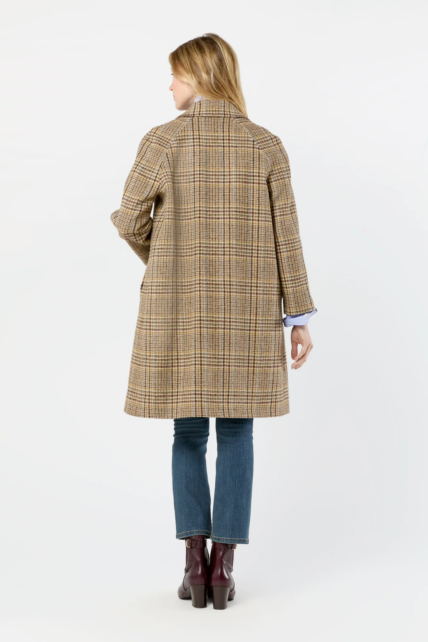 This coat is made from Harris Tweed, a super-special heritage textile from the Outer Hebrides that's by definition hand-woven on a treadle loom in the weaver's own home. (It's regulated by Scottish law.) Only a select few craftsmen are certified for this, and most come from families that have been weaving for generations.