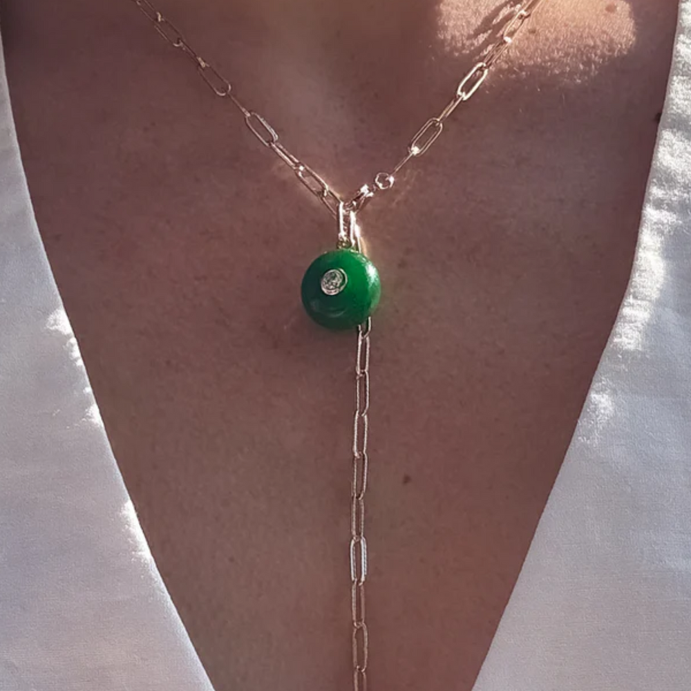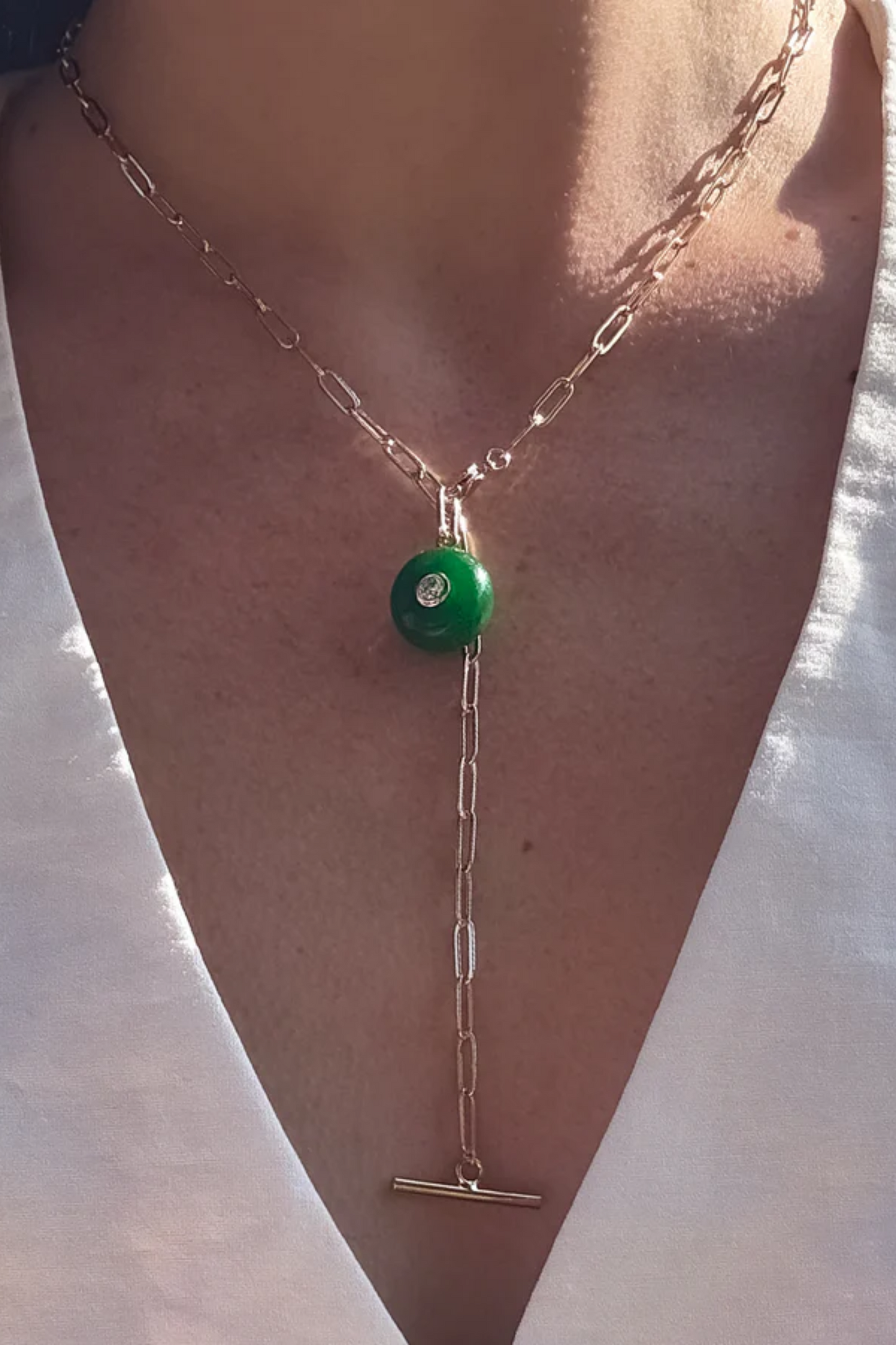 This fun and cheeky charm in an array of candy-colored hues adds a pop of fun to every neckline.