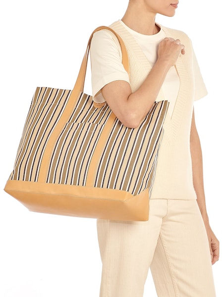 Regular price $220.00The Caramella Large Tote is made with durable canvas cotton fabric, providing a timeless design and long-lasting quality. It features one exterior slip pocket and an interior detachable zip pocket. Perfect for everyday use or a day out, with plenty of room for all your essentials.