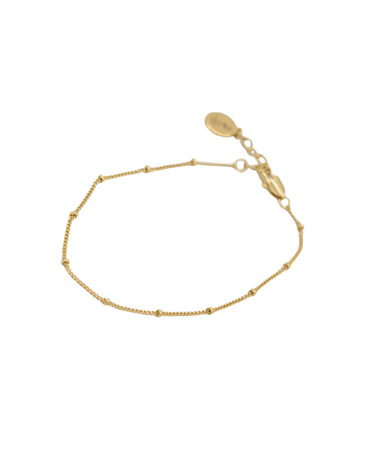 Size: 6.5”-7.5” Adjustable Bracelet, with 1mm gold balls.