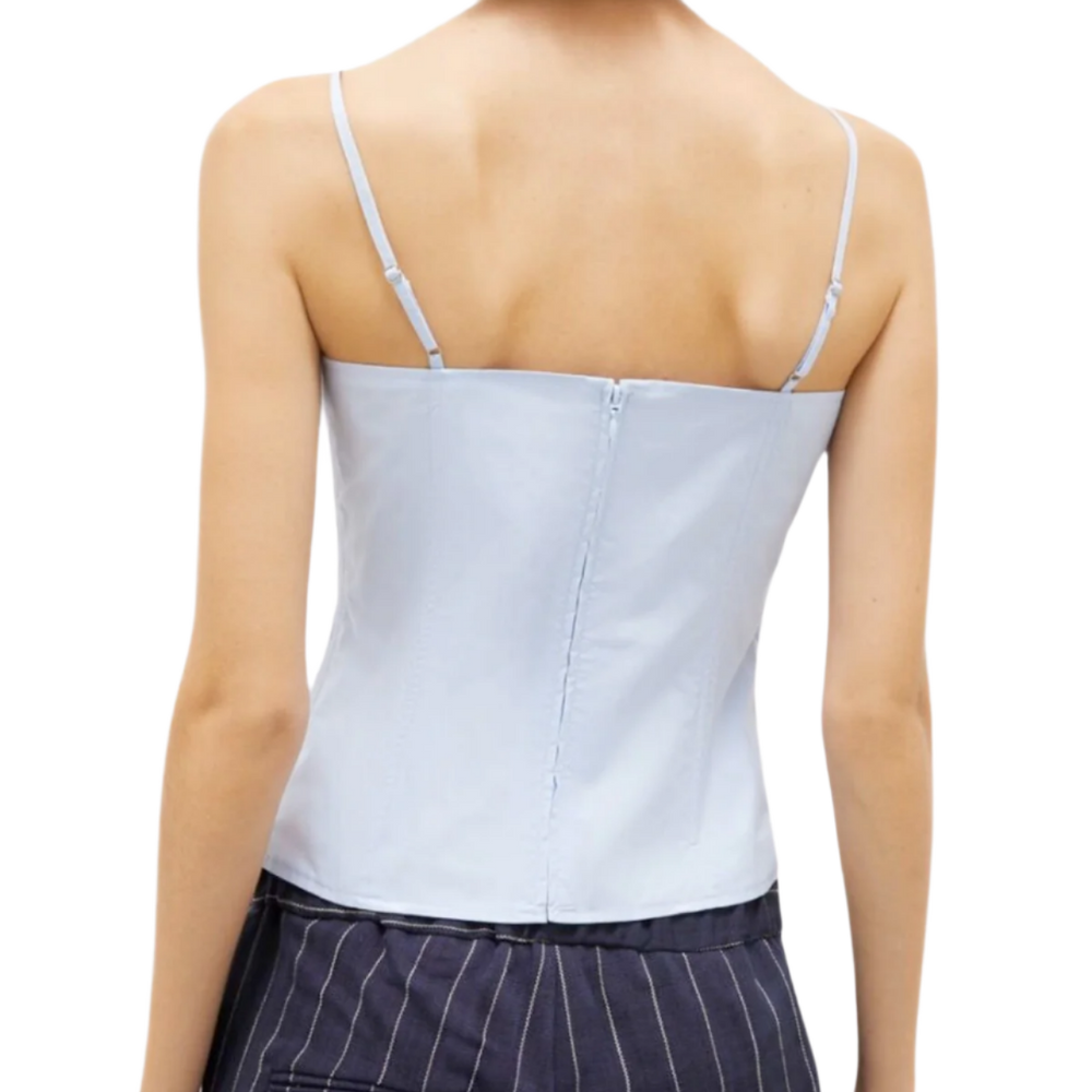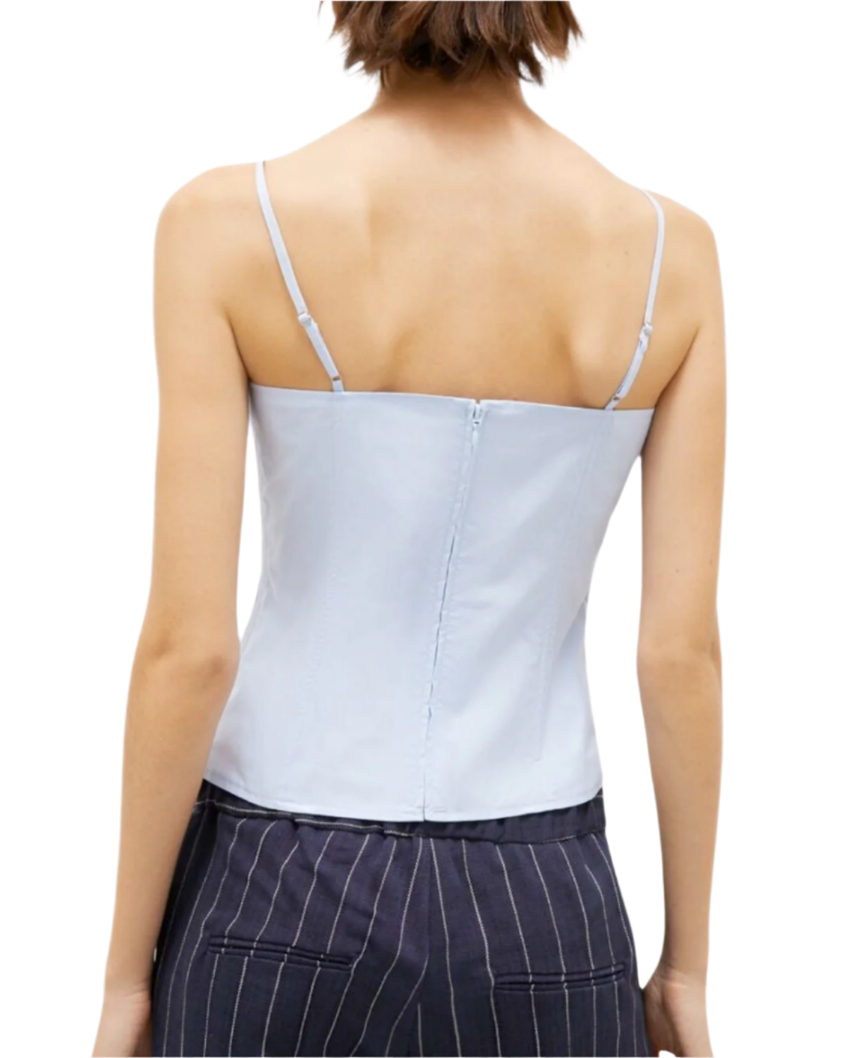 Suitable for the most glamorous occasions: this poplin corset combines femininity, a romantic allure and a metropolitan touch. Pair with tailored trousers or jeans to follow the mood.