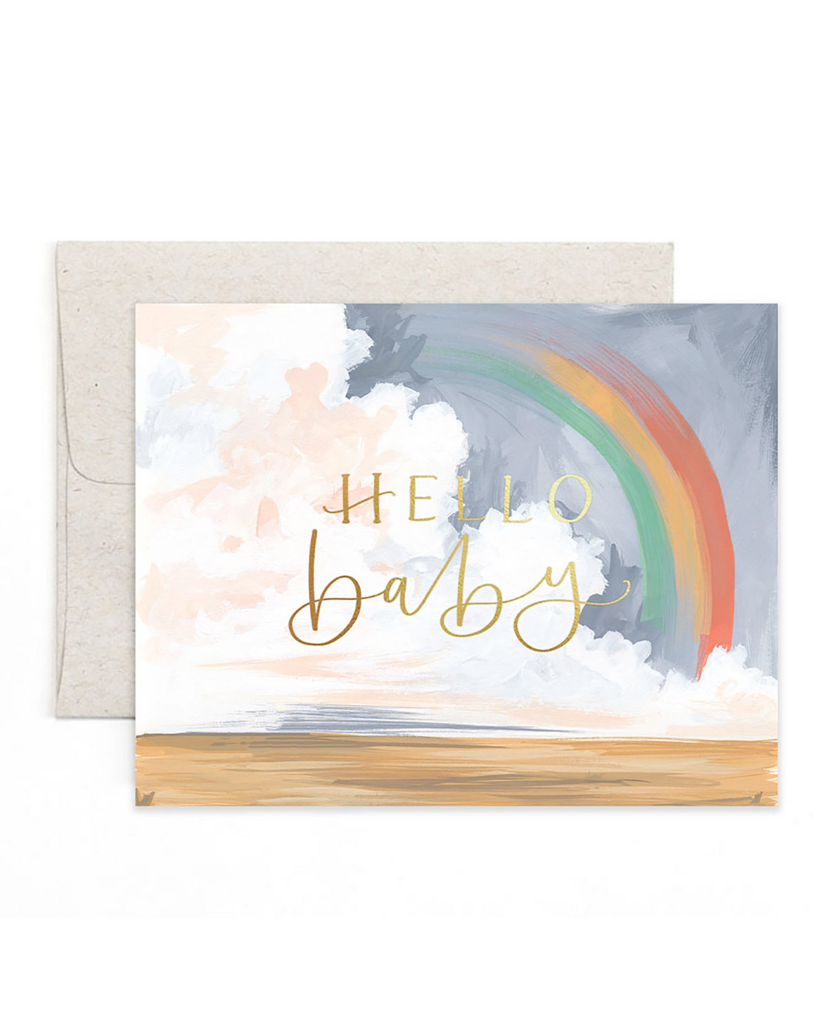 Hello Baby Rainbow Card with gold foil - "Hello Baby"