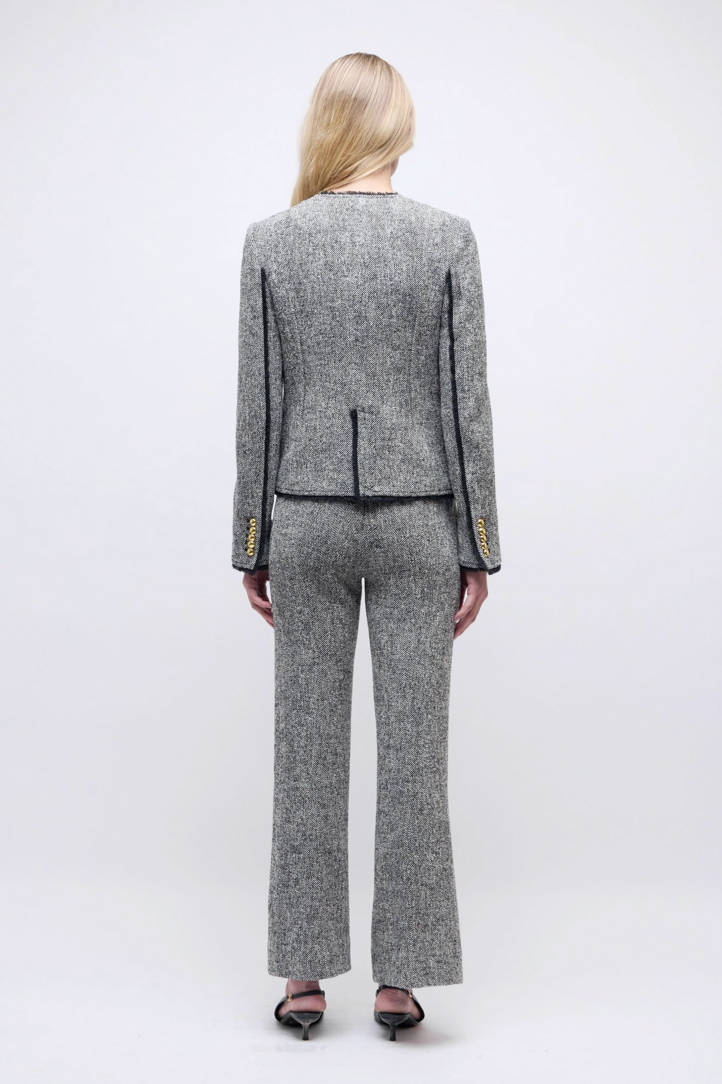 This blazer from Simkhai features a herringbone tailoring with contrast edge detailing