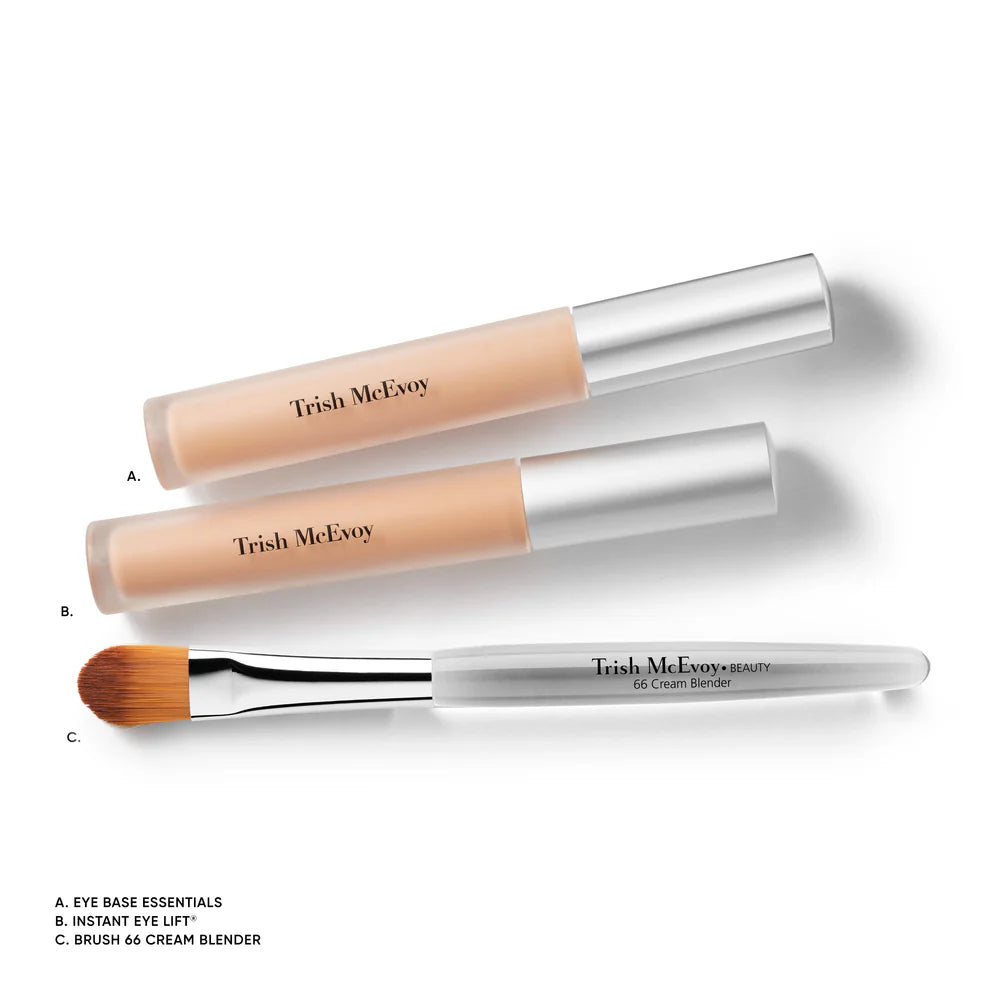 Apply in Trish's signature Trish McEvoy Triangle of Light® technique, an upside-down triangle under each eye. Pat gently into skin until blended using Trish's Brush 66 Cream Blender or your ring finger and wear alone, over eye cream, or under concealer and foundation.