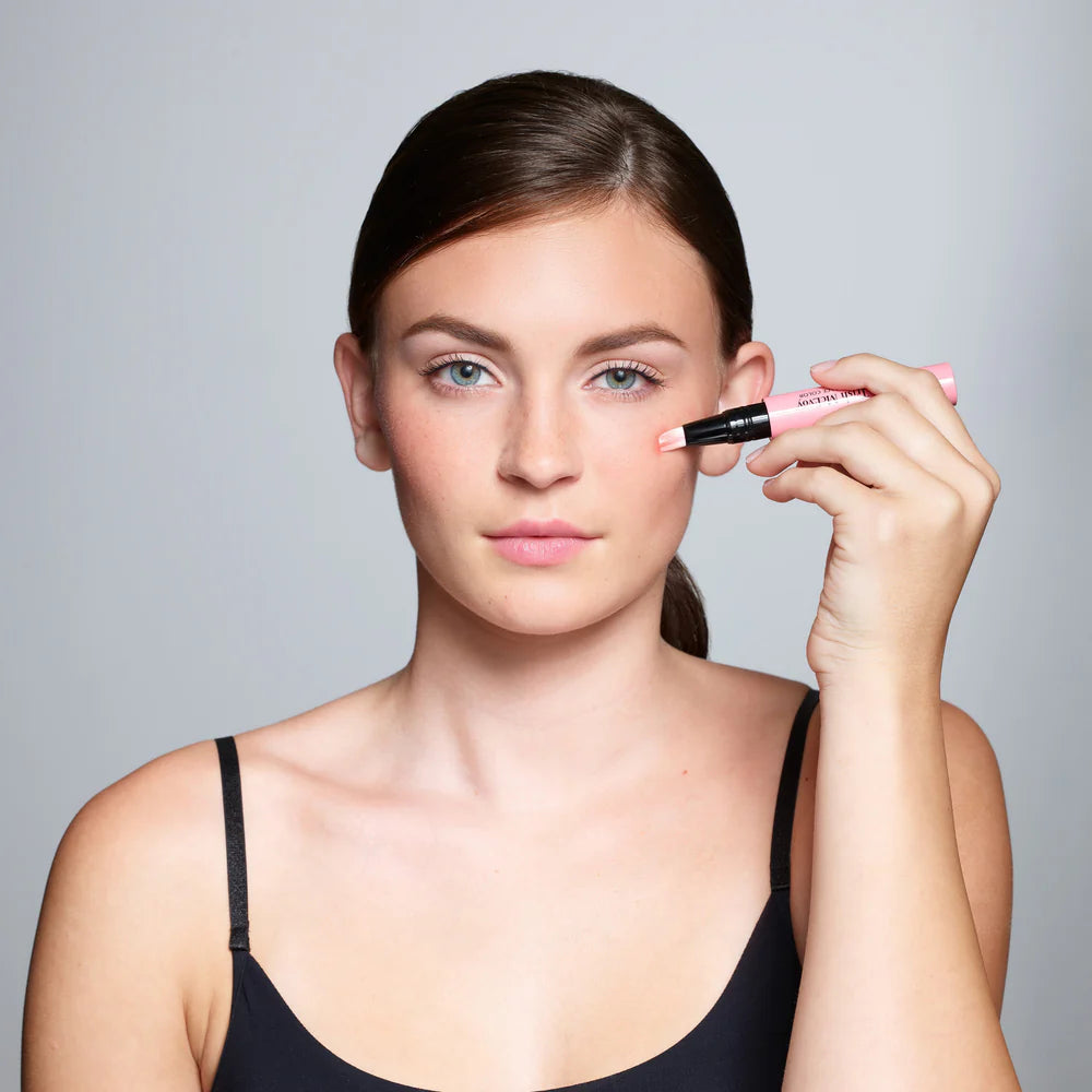 Prior to initial application, rotate the pen until the product reaches the tip. Then, use a Trish brush, fingertip, or directly apply to the cheek to distribute a small amount of product. Gently pat with your finger to achieve a seamless blend with the skin's natural color.