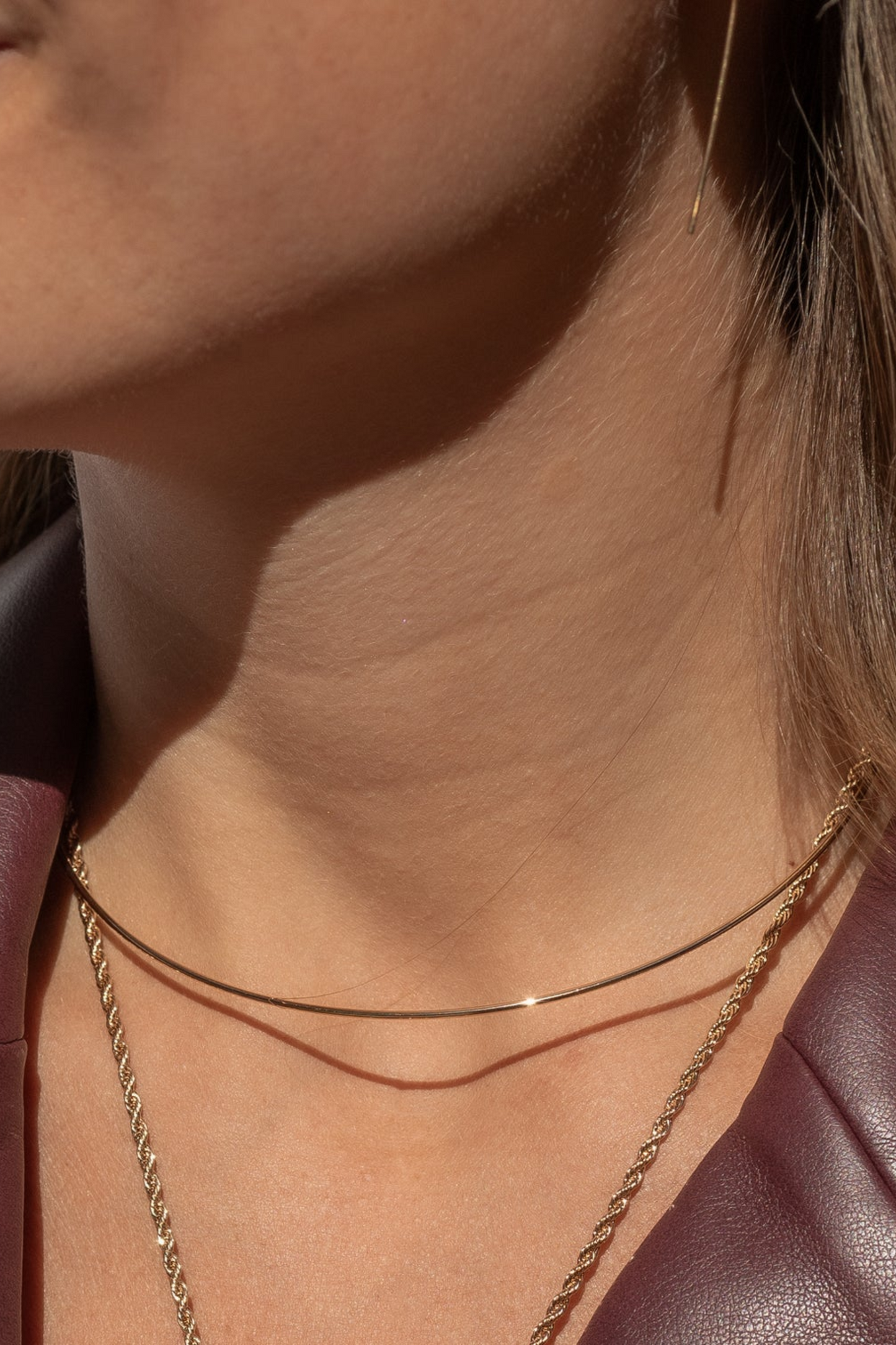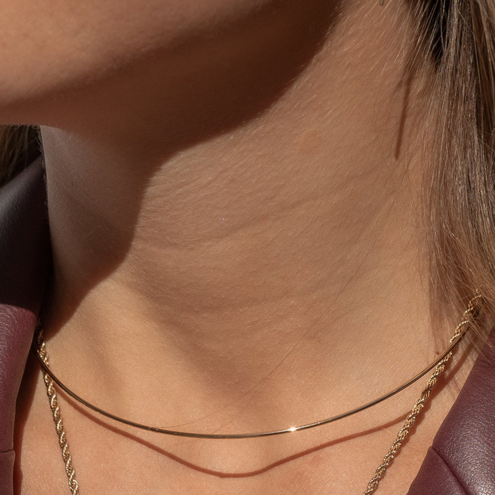 A minimalist's dream. This delicate choker is a whisper of gold when worn alone, or an artful way to showcase your favorite charms. Recommended additions are beads, classic charms, or a little bit of both.
