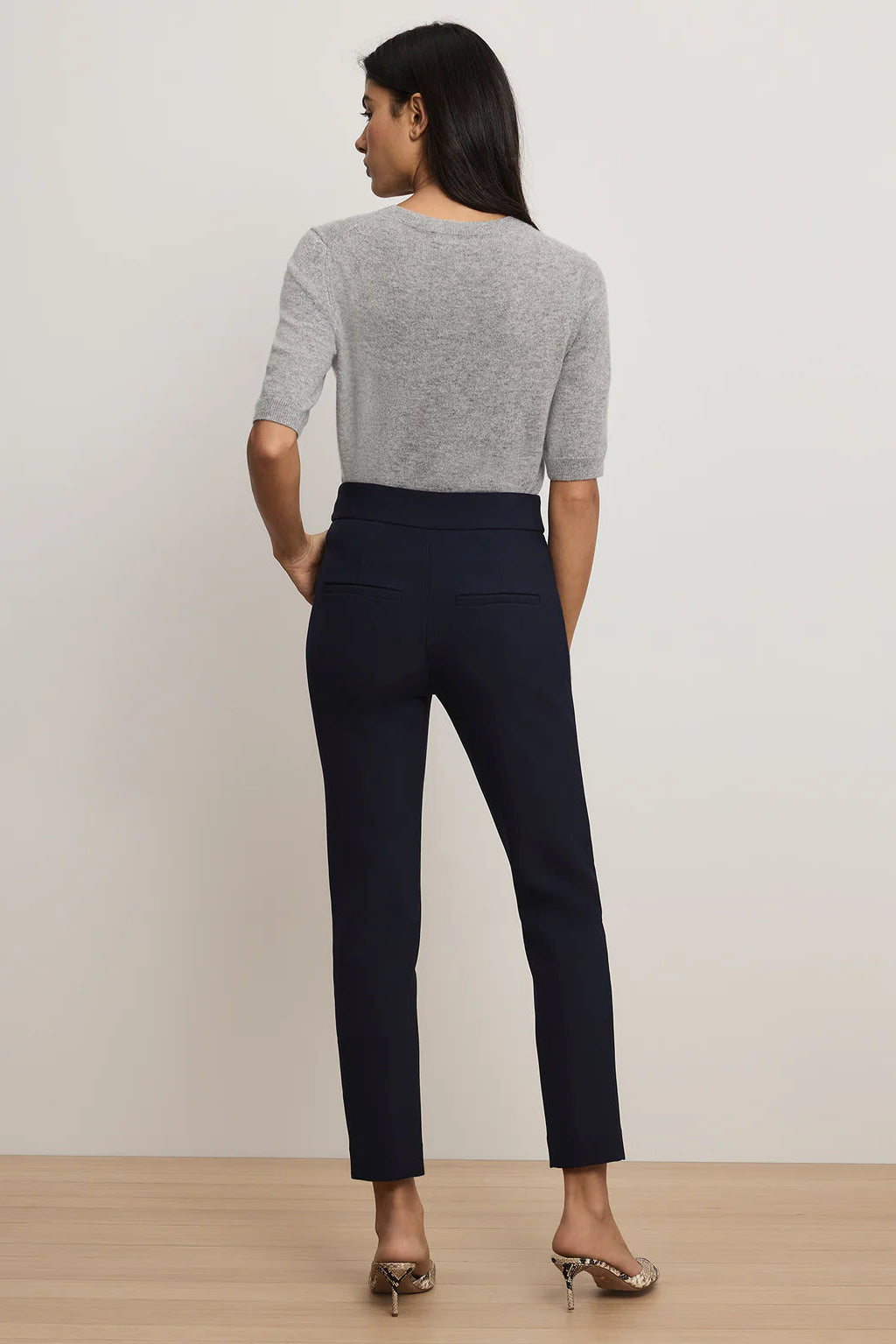 The Renzo pant you know and love—now with a sleeker finish. Crafted from Veronica Beard's bestselling Transitional Suiting fabric in black, they've removed the buttons and coin pocket for a clean, streamlined look. Everything else remains the same: a flattering high-rise waist and slim, cropped leg. A polished go-to for the office, wear it with a feminine blouse and statement heels, or pair it with the Miller Dickey Jacket for a tailored set.