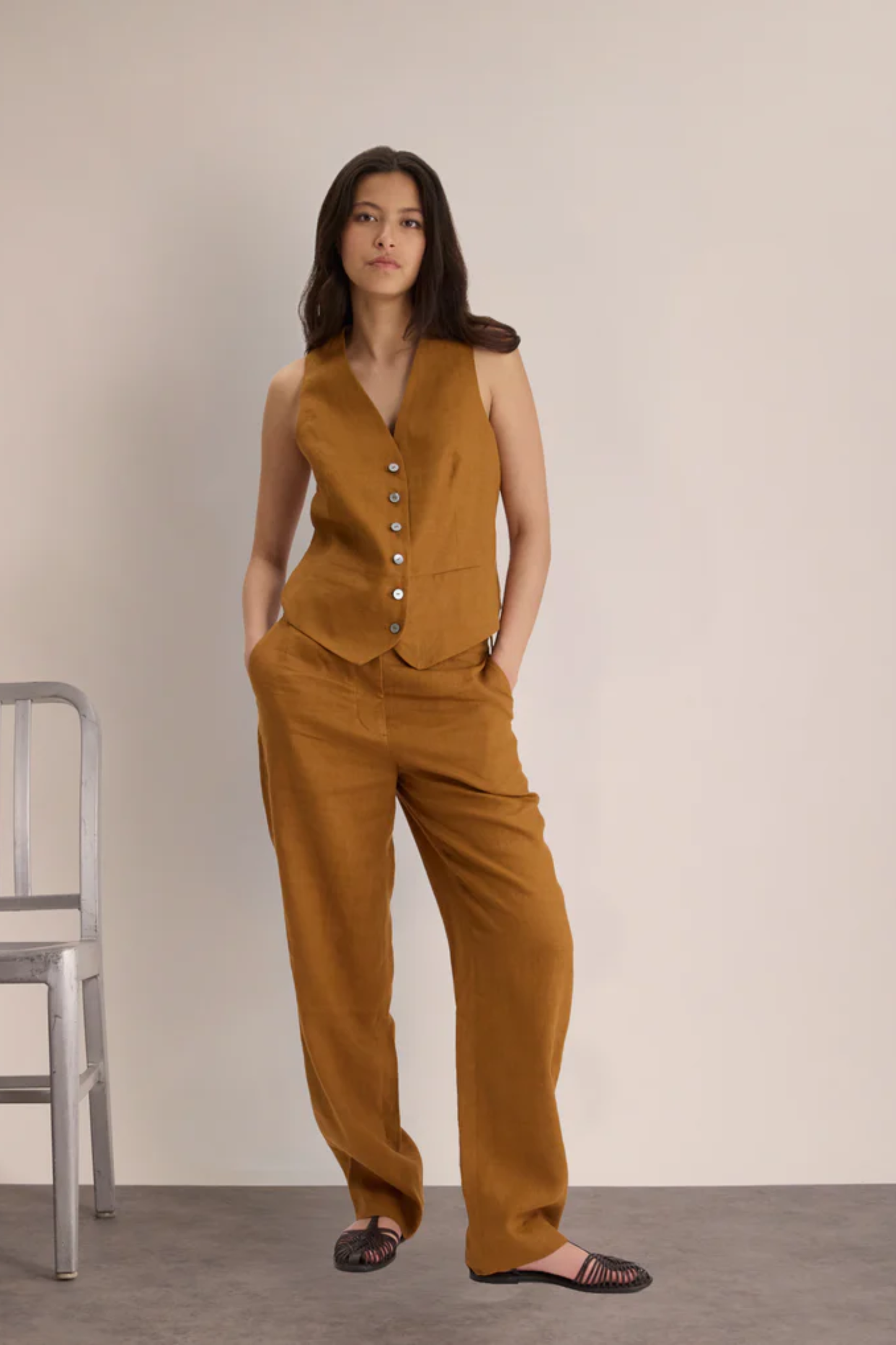 Be bold with a waistcoat! Sanite adds a touch of character to your outfits, while remaining understated and easy to style. Its straight cut and V-neck emphasize a balanced silhouette, while its color brings a modern touch to this classic piece.