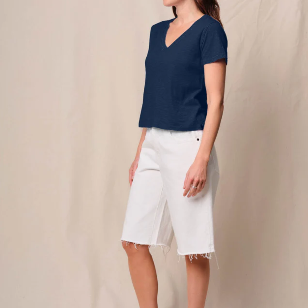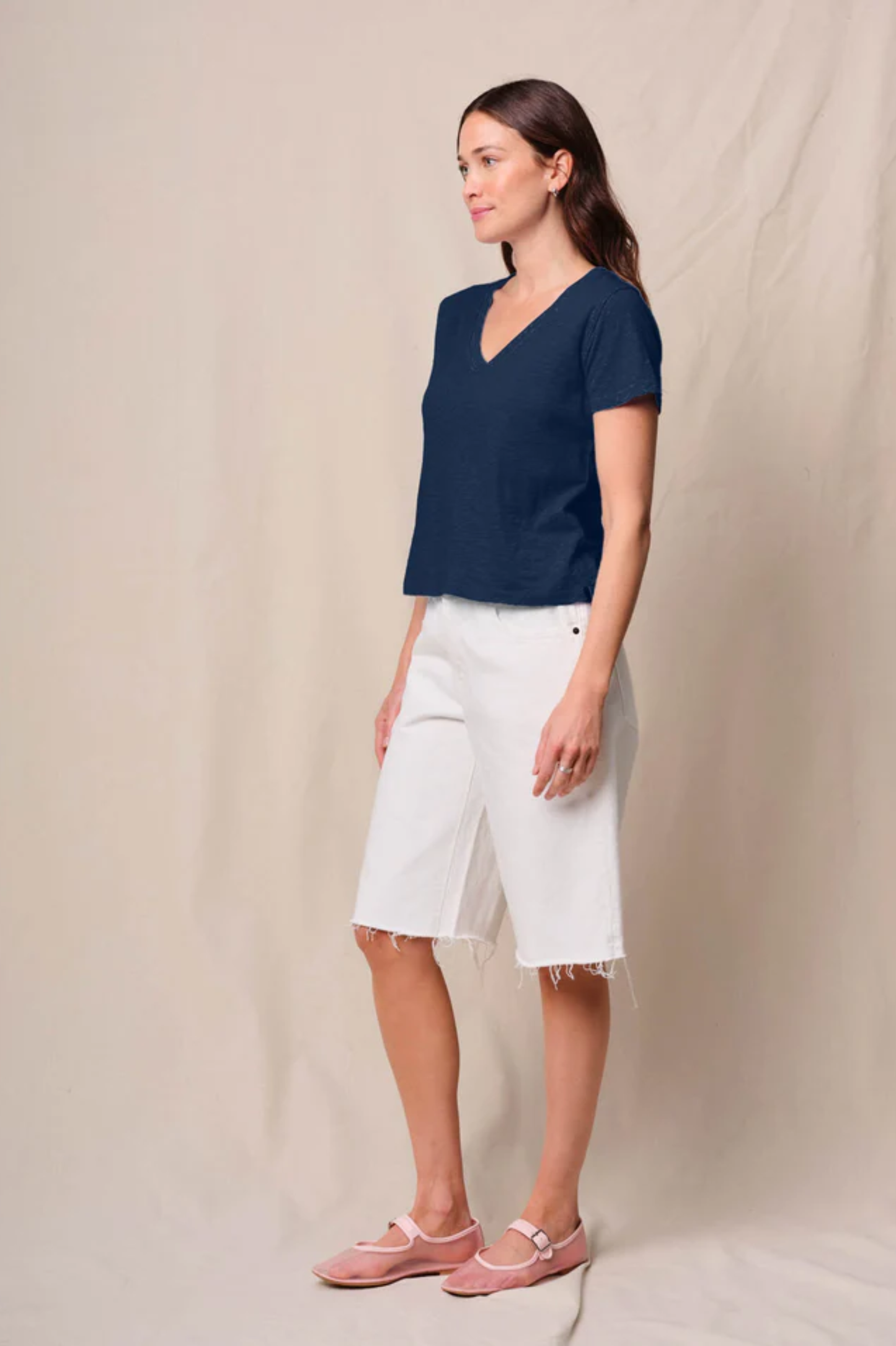 Our premium Supima slub jersey v-neck has rich varied texture that holds its shape. Achieve the ultimate lived-in feel with this uncommonly soft essential that just gets better with wear.