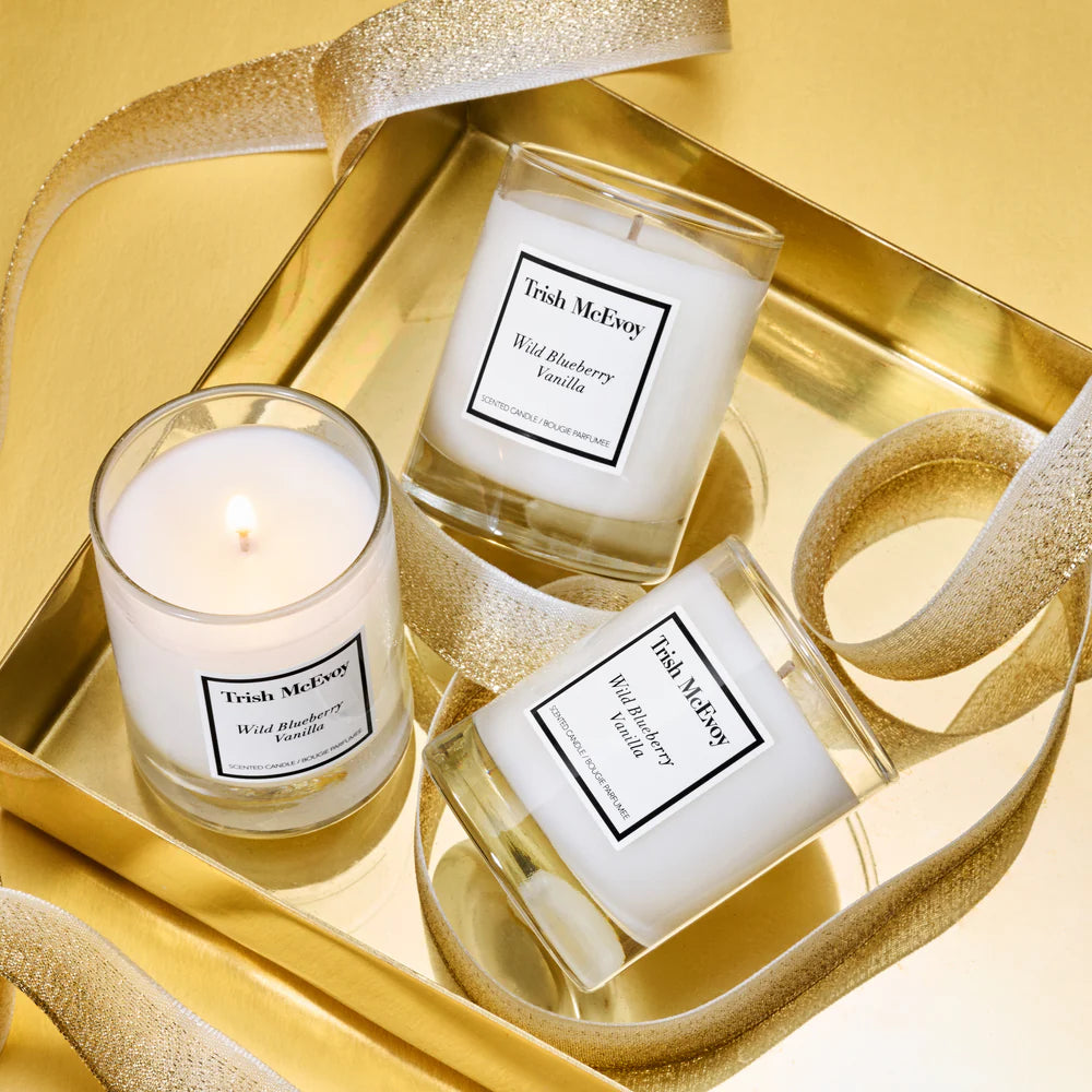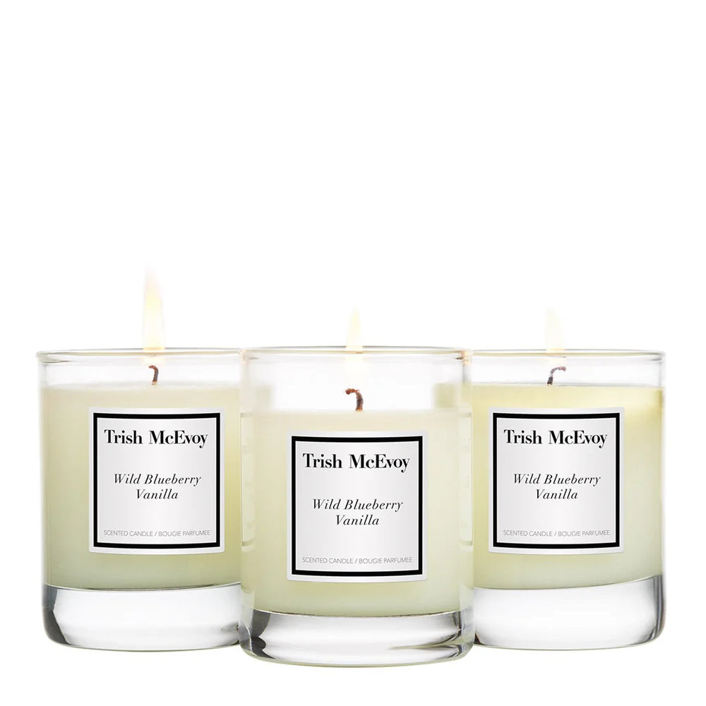 Experience the delightful aroma of Trish McEvoy Wild Blueberry Vanilla Scented Candle Trio. Each candle is crafted with a high concentration of all-natural soy wax for a clean, long-lasting burn. With two lead-free wicks, this set offers the perfect combination of fragrance and ambiance for any space in your home.